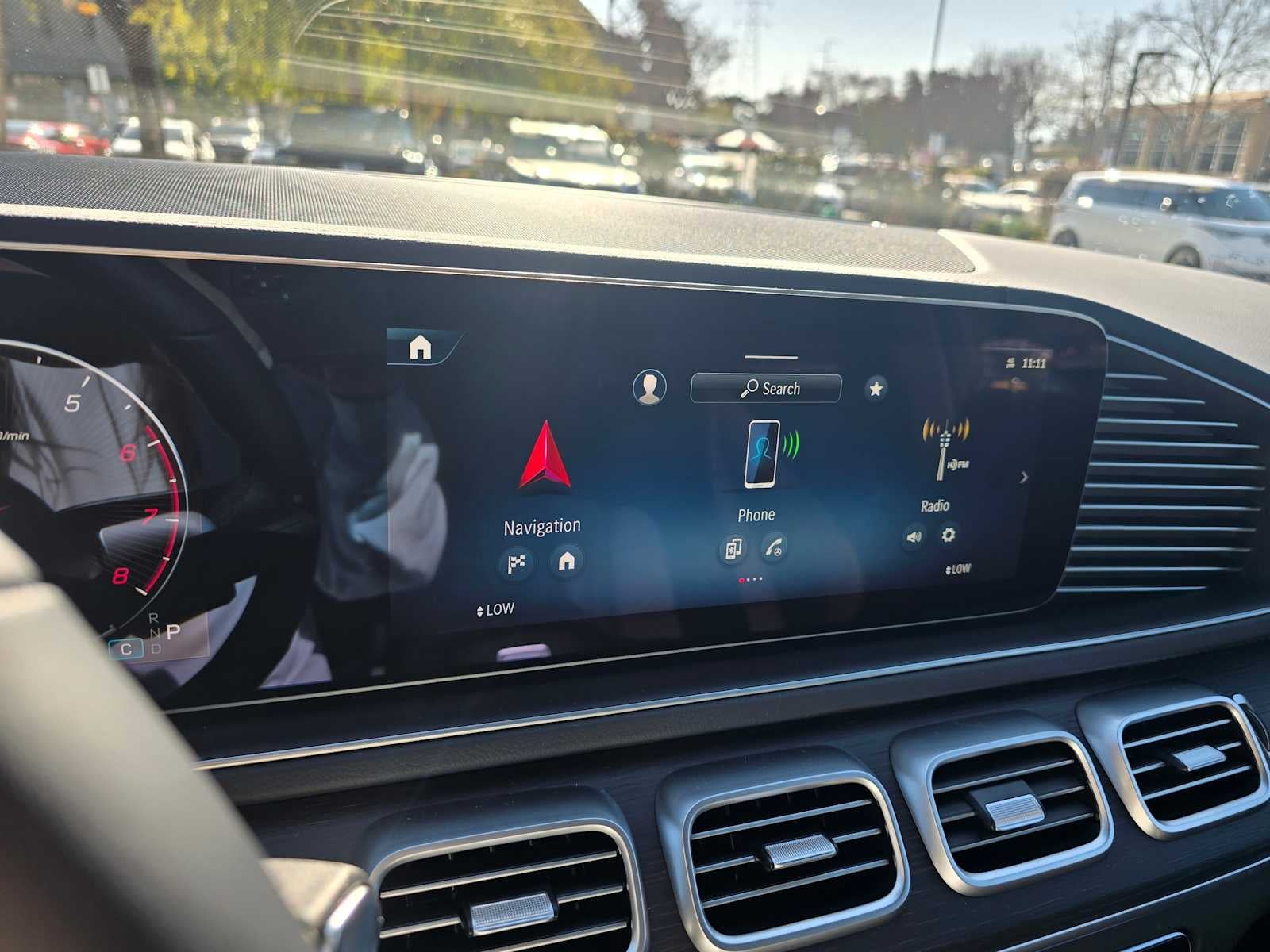 - Radio: Burmester Surround Sound System -inc: Dolby Atmos, music streaming, sound personalization, 13 speakers, 590-watt amplifier, Frontbass technology, voice control w/Natural Language Understanding, wireless Apple CarPlay and Android Auto, 12.3" media touchscreen display, MB navigation w/live traffic and map updates and SiriusXM radio
