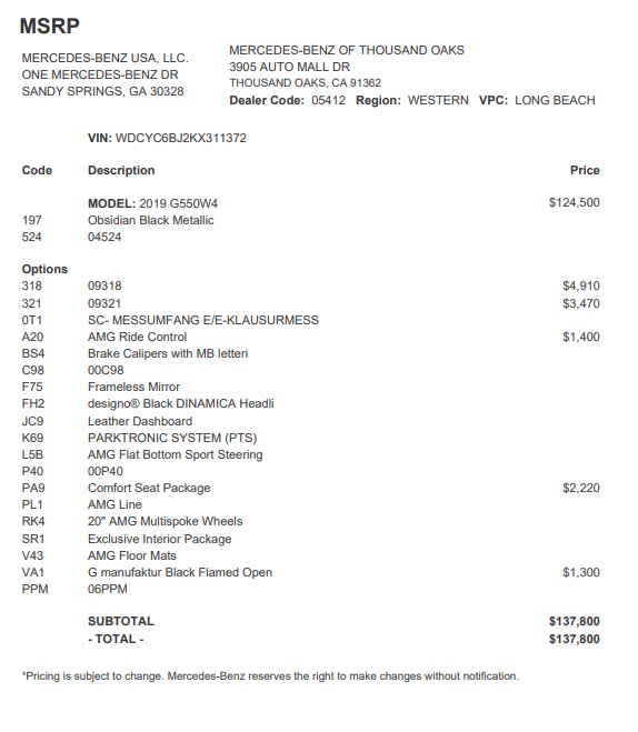 - Vehicle Name: Mercedes-Benz G-Class