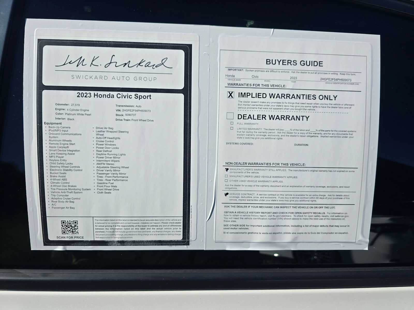 - Vehicle Name: Honda Civic Sedan
