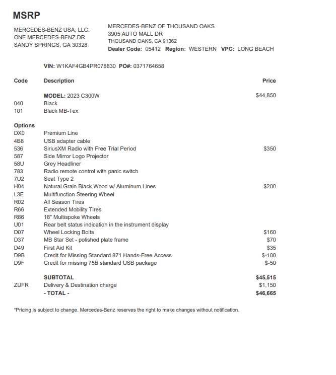 - Vehicle Name: Mercedes-Benz C-Class