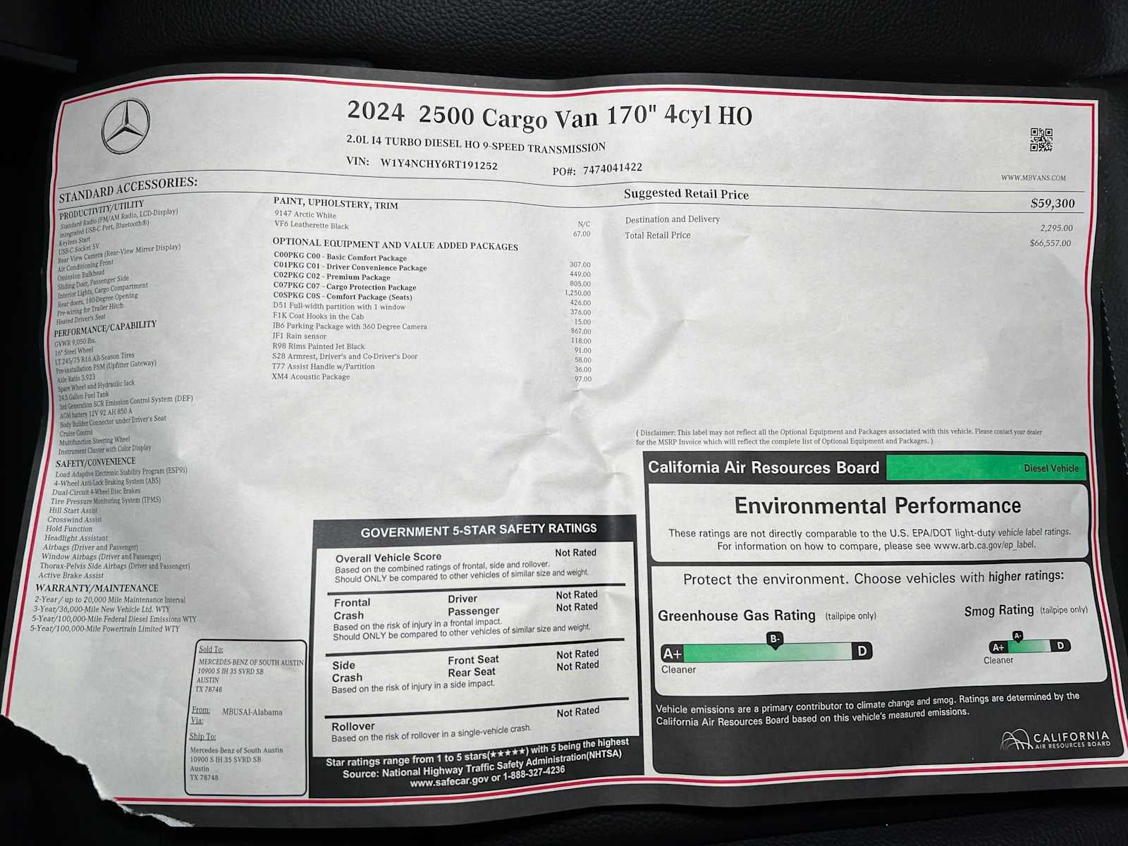 - Vehicle Name: Mercedes-Benz Sprinter Cargo Van