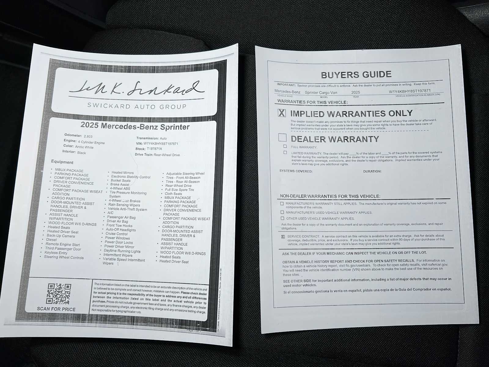 Step into the realm of versatility and innovation with the 2025 Mercedes-Benz Sprinter Cargo Van, where every journey through Washingtons diverse landscapes is tailored to meet your business needs. As you slide into the drivers seat, the MBUX Multimedia System with a 10.25 touchscreen becomes your command center, seamlessly integrating navigation and smartphone connectivity to keep you connected on the go. The serene cabin envelops you in tranquility, letting you fully immerse in the journey ahead, while the rearview assistance offers confidence as you maneuver through bustling urban landscapes. With the Parking Package, parking becomes effortless, making every delivery a breeze. The Comfort Package enhances your driving experience with heated seats and lumbar support, ensuring that long hours on the road are met with comfort and ease. The wood floor with six D-rings provides a sturdy foundation for your cargo, while the cargo partition keeps your items secure during transit. With the Driver Convenience Package, features like electrically folding exterior mirrors and additional master keys make your day-to-day operations smoother. This Sprinter is not just a vehicle; its a reliable partner designed for those who demand excellence in every mile. Ready to elevate your business? Visit us today at Mercedes-Benz of Seattle and discover how the 2025 Sprinter Cargo Van can transform your operations and redefine your expectations.According to CARFAXs Vehicle History Report, this car is Accident-Free and is well-maintained (regular oil changes; general maintenance)!!