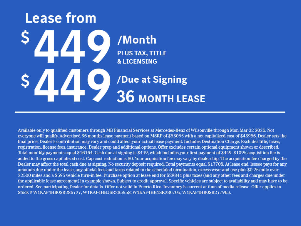 Sunroof, Full-Time 4MATIC® All-Wheel, Power Liftgate, Heated Driver Seat, Back-Up Camera We are your locally owned Mercedes-Benz dealership. We are proud to represent Mercedes-Benz in the Portland region, and want to make sure that you have a Mercedes-Benz dealership worthy of serving you. Sit back in our customer lounge and enjoy an array of amenities. The Mercedes-Benz name attracts a special kind of clientele. You have unique taste and are looking for the perfect car to match. Let us show you why that perfect car is Mercedes-Benz.