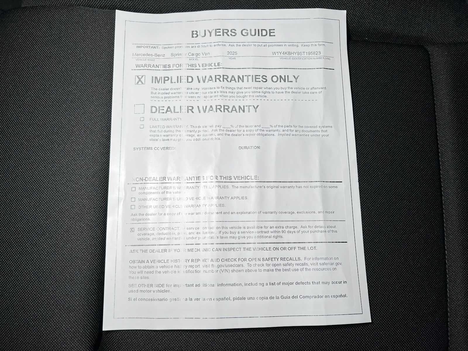 - Vehicle Name: Mercedes-Benz Sprinter Cargo Van