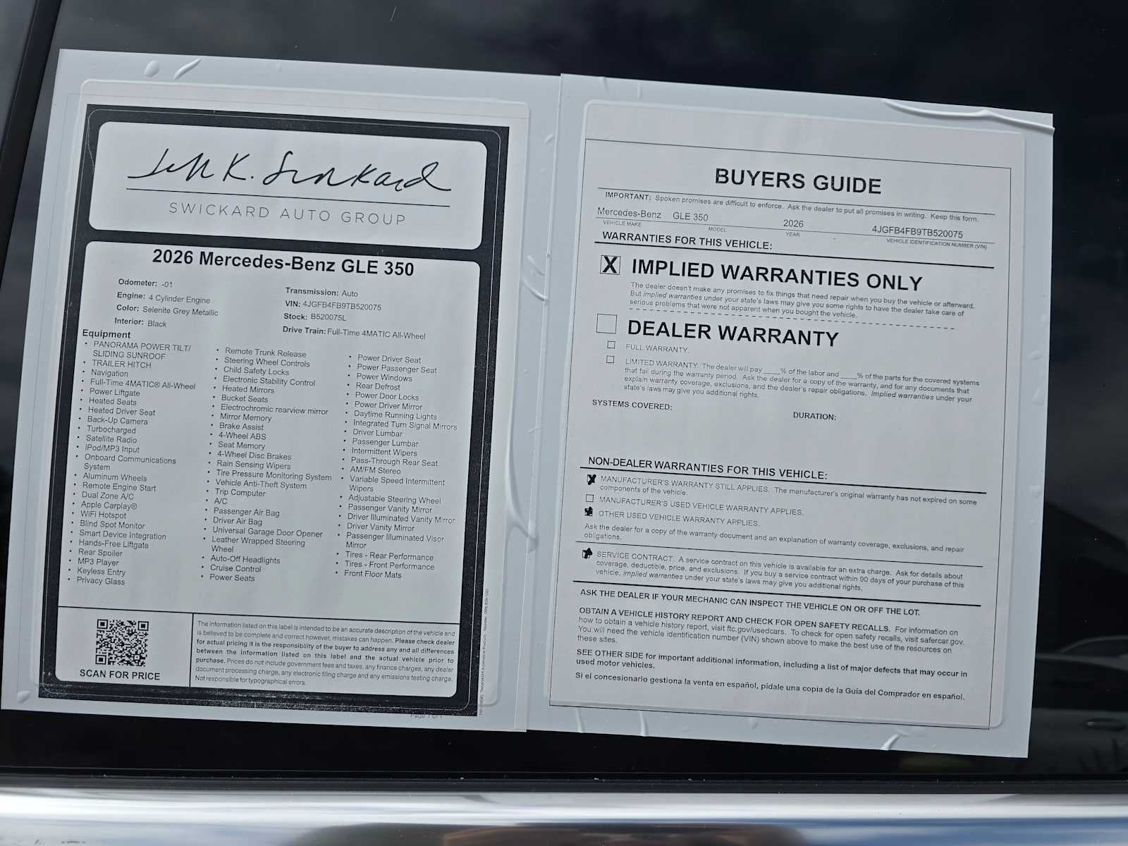 - Fixed Rear Window w/Wiper, Heated Wiper Park and Defroster
