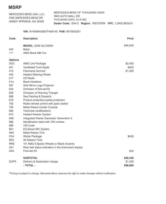 - Vehicle Name: Mercedes-Benz GLC